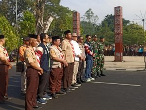 Meski panas matahari sudah terik sejak pagi hari, seribu-an peserta dan anggota pramuka tetap sigap berdiri dari awal sampai akhir mengikuti Upacara Pembukaan LLA ke-29 SMAN 1 Sumedang, di Alun-alun Sumedang, Minggu, 12 Oktober 2024.